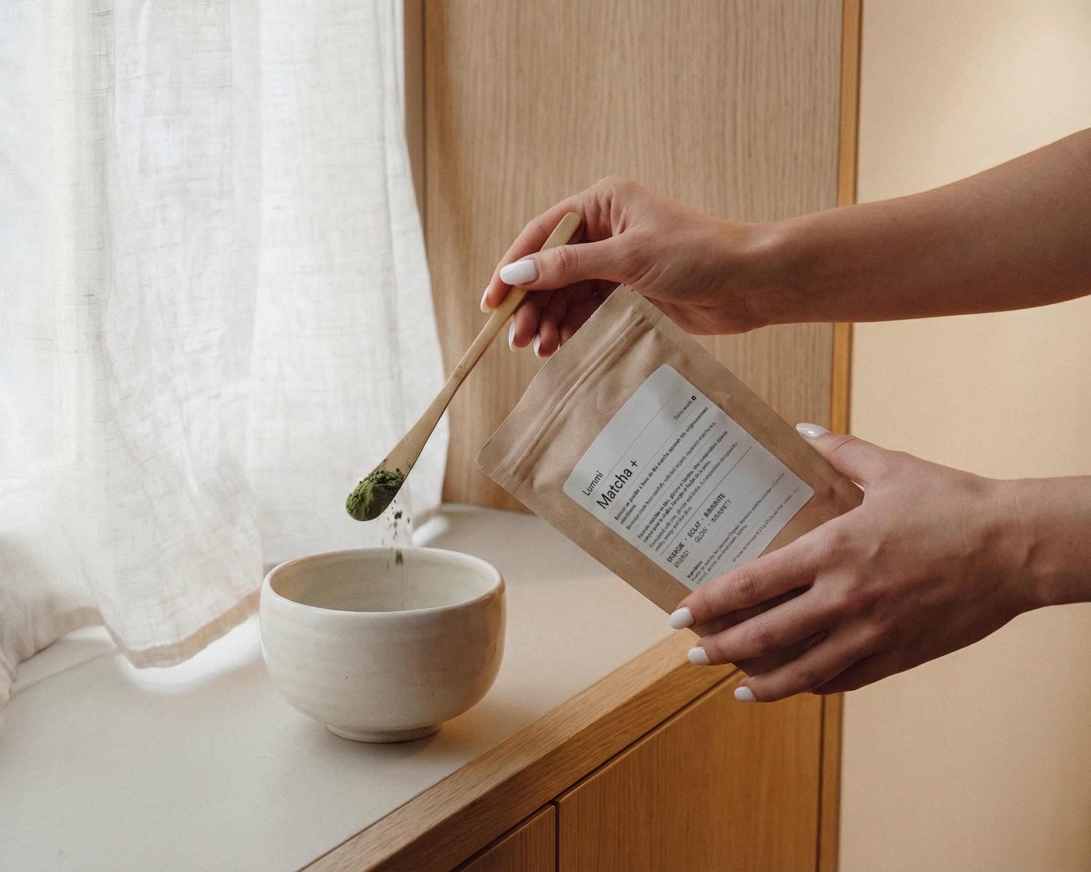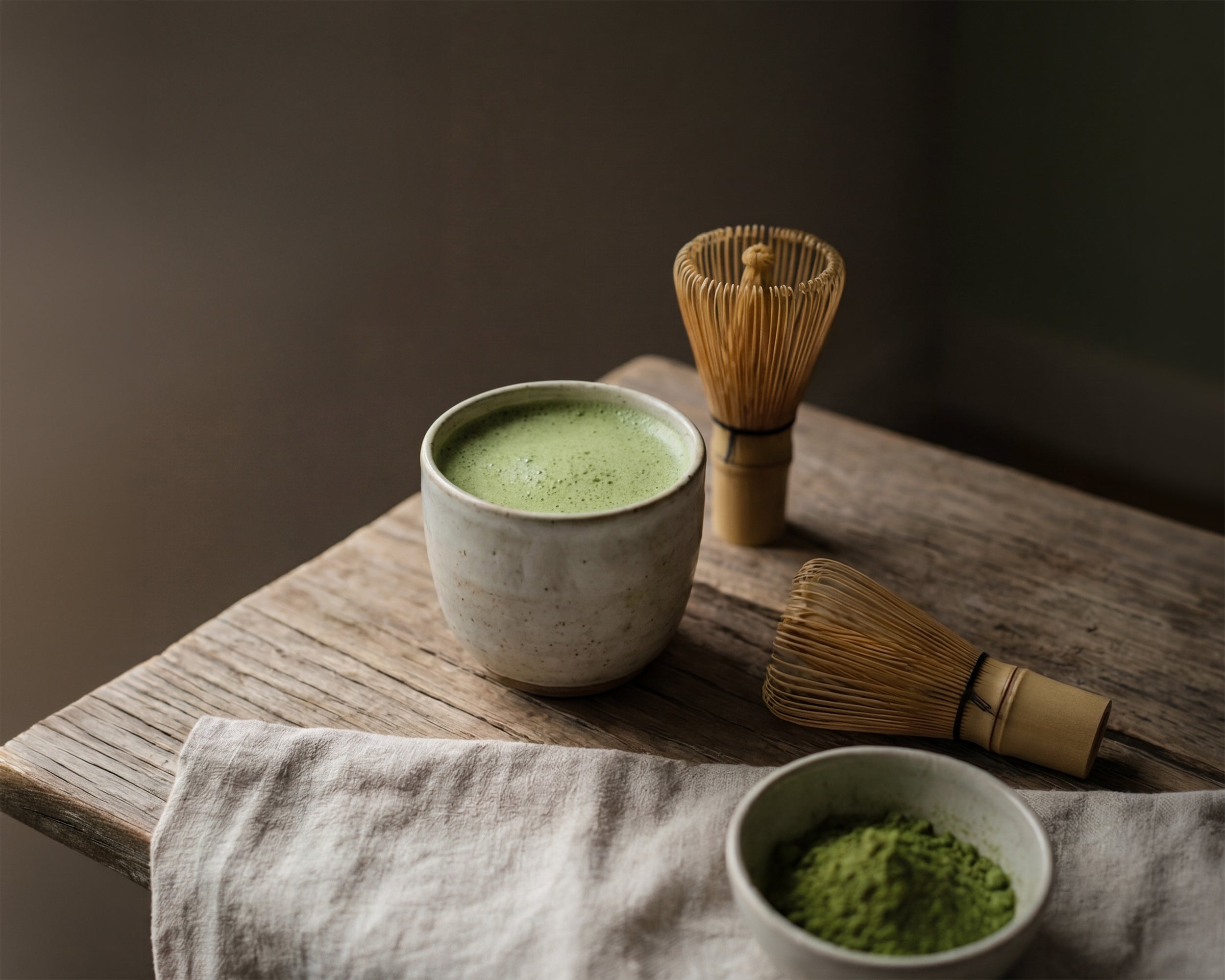Notre matcha s'inscrit dans un rituel quotidien qui soutient l'énergie, l'éclat de la peau et la concentration, avec douceur et constance.
